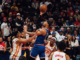 And Marcus Morris — what can you say about Marcus Morris — he hit big shot after big shot for the Knicks in the 4th quarter as they took the game. He made one bad play, fouling Sabonis on a breakaway slam (where it looked on replay that Morris had not actually touched Sabonis until after the slam as the two were heading out of bounds together, but it “looked like” a foul) — for a 3-pt play and a 3-pt lead with less than a minute left — but made up for it on the very next play by hitting another clutch jumper to ice the game. Morris finished with 28 points on 10-21 and a +14. If he’s not playing at an All Star-caliber level, he’s close.