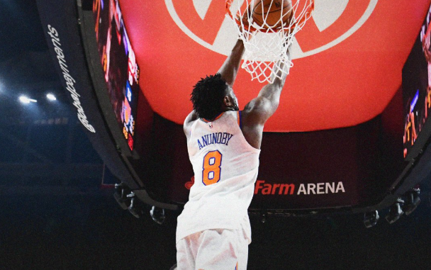 OG had 22 pts on 7-14 shooting (4-10 from 3) with 2 blocks and clutch free throws in the final seconds. Photo courtesy NY Knicks.
