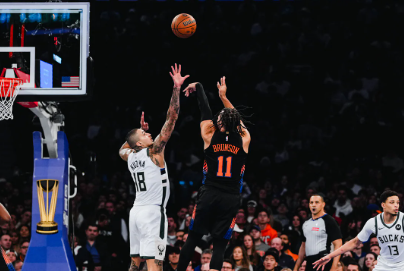 NY improves to 12-6; Milwaukee falls to 8-12, losers of 7 in a row (4 of them without Greek Freak). The game was an in-season tourney game — NY advances while Milwaukee is eliminated.