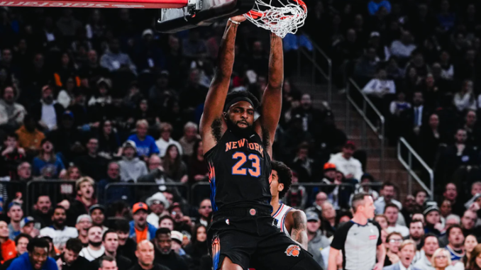 Mitchell Robinson wasn’t just hitting free throws — he was dominating on both ends of the court, blocking shots on D, ripping down rebounds on the offensive and defensive glass, dunking inside, and slamming home alley-oop passes.
