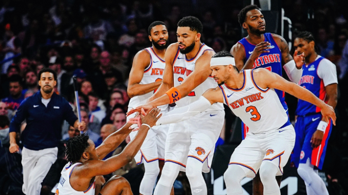 NY could not stop 6’6 Cade Cunningham, who destroyed them all night with killer 3’s and buckets inside for 42 pts on 17-34 shooting (5-11 from 3). And 6’9 journeyman Paul Reed — who started at center in place of an injured Jalen Duran — did a Job on Karl-Anthony Towns, making his life difficult — although Towns got his. Reed scored 18 pts on 7-9 shooting and blocked Towns inside several times in the 2nd half. Detroit’s bench killed NY as well — with Caris LaVert, Daniss Jenkins, Ronald Holland II, Javonte Green, and Tolu Smith going a combined 13-20 from the floor (4-7 from 3) for 36 pts.