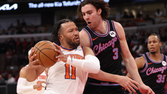 But Brunson penetrated the lane, drew 3 defenders, and fed Mikal Bridges who stuck a 3 from the corner and it was goodnight Chicago — NY 103 Chicago 97 with 26 seconds left.